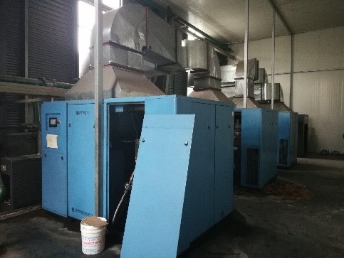 2012年,该客户公司选用一台国内某品牌110kw空压机,随着业务的发展又陆续增加了一台110kw双级压缩和两台90kw的机器。2018年,业务再次增长,车间用气压力从8bar降到了6bar,用气量需要进一步加大。同时,车间不同产线的工作时间和气压需求也不同,造成了高峰时段压力不够,低谷时段用气浪费的情况。
