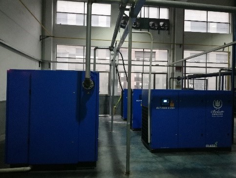 为此,客户急需对空压机进行升级改造。博莱特代理商博越机电汪总亲临现场进行多次勘查、测试并和公司技术人员反复讨论,为客户提供了一个既满足用气,又满足气量和气压变动的解决方案。经过反复沟通说明,客户逐渐信任博莱特的实力,最终决定采用此方案。方案中,博莱特选用了公司新款产品:BLT S油冷永磁变频空压机 和其它加强型1级能效的机器等产品组合,共计5台,同时配有集中控制系统。