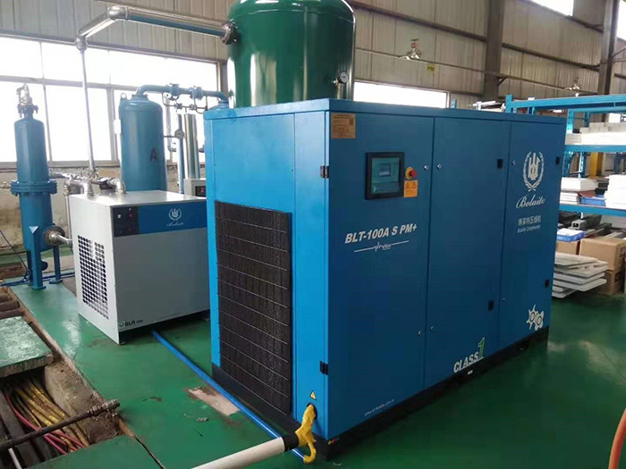 该客户一期需要7条流水线,每条需要4-12立方不等的供气。客户对多个空压机品牌进行反复比较,博莱特BLT-100A S PM+油冷永磁变频空压机凭借其高效的性能,出色的变频调速技术赢得了客户的认可。