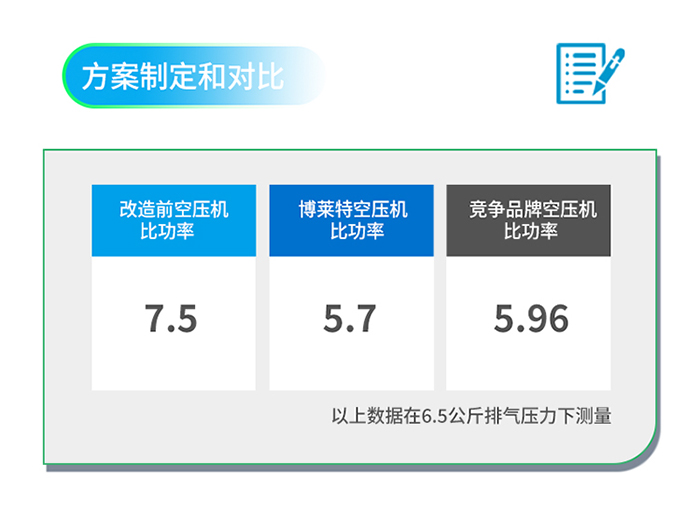 最终,根据现场压缩机实测数据、服务人员的专业性等多个方面因素,用户选择了博莱特的节能改造方案。